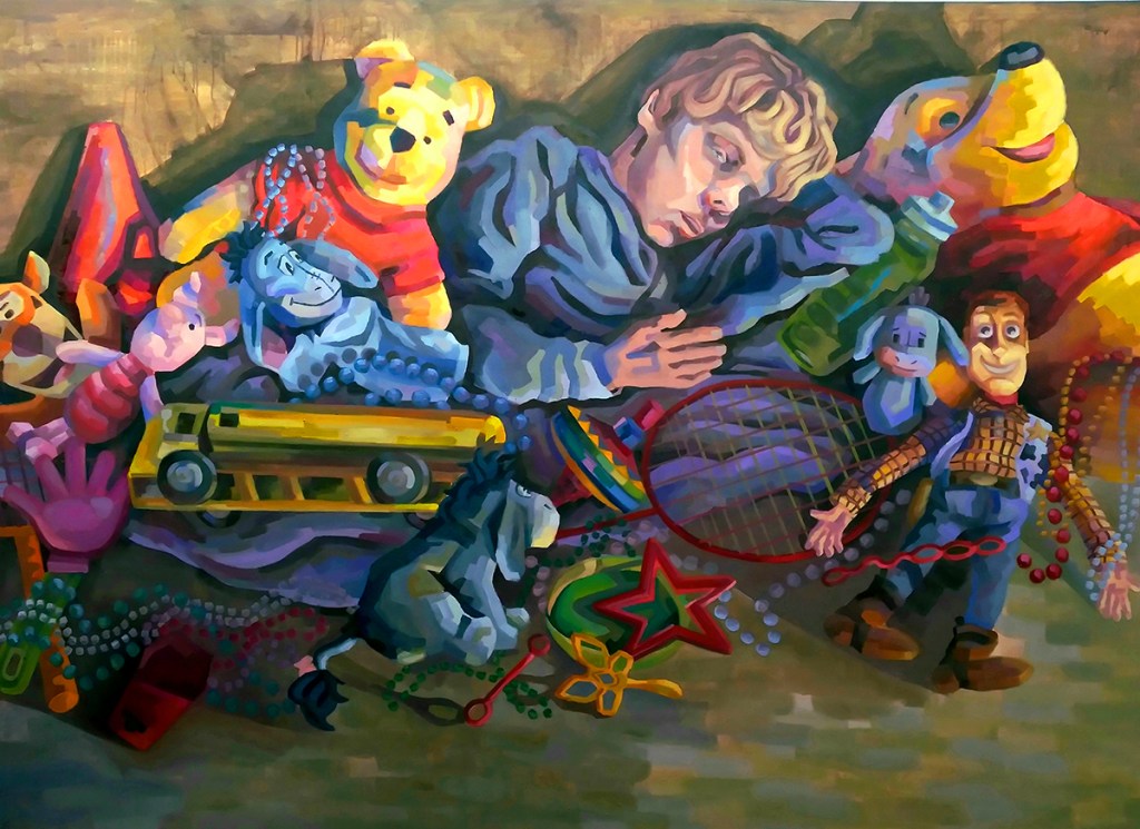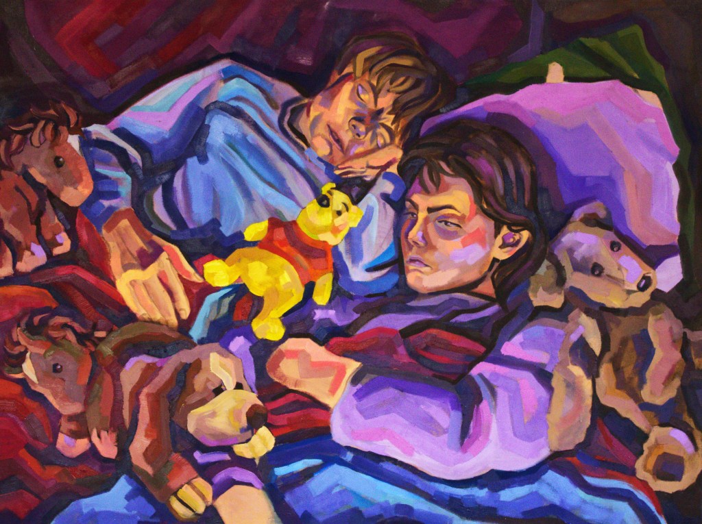 How He Sleeps at Night, Oil on Canvas, 64×80 Inches, 2022