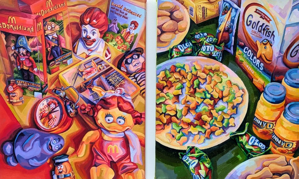 Nostalgia in Fast Food and Fun Snacks, Oil on Canvas, 20×32 Inches, 2024