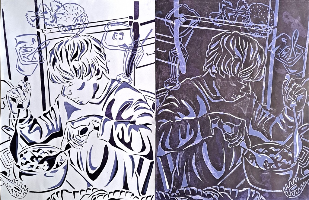 How He Eats, Stencil Print, 30×44 Inches, 2021