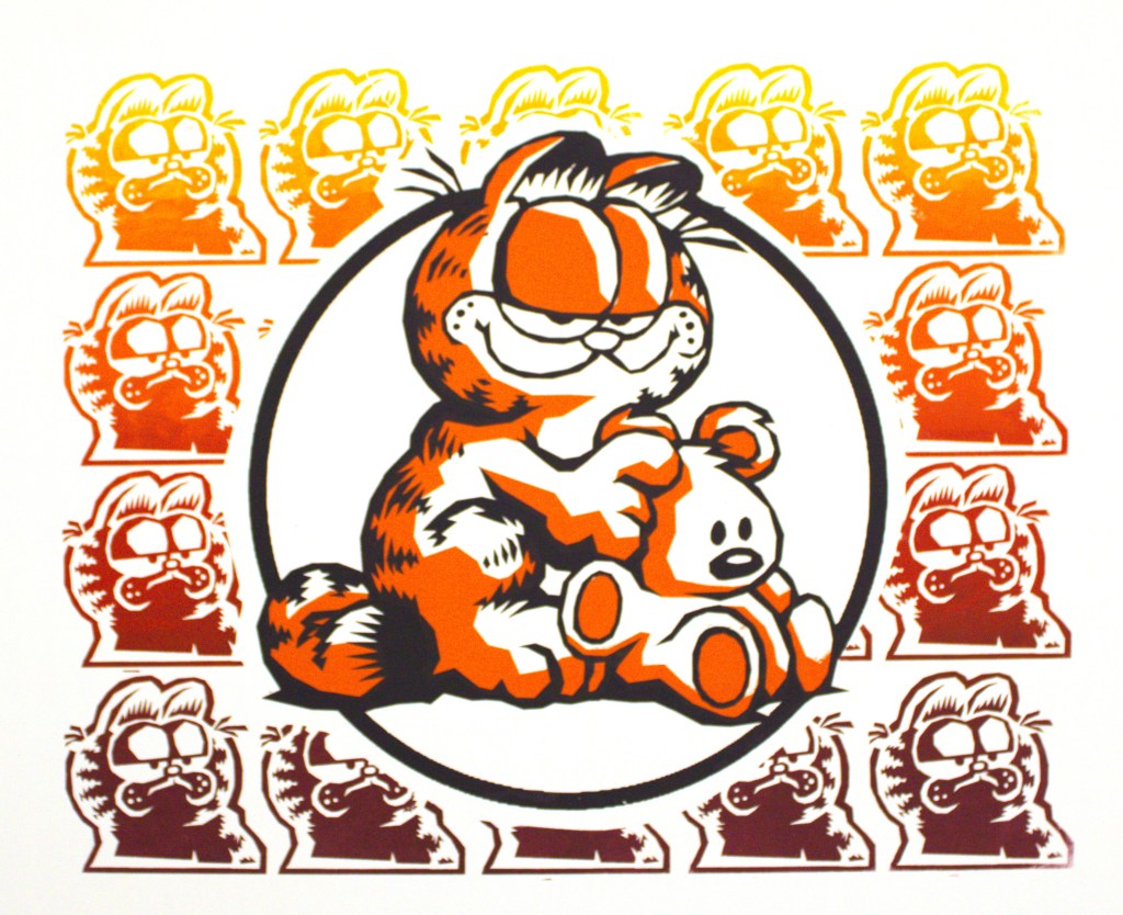Garfield and Pookie, Silkscreen with Speedball Ink, 10×16 Inches, 2022
