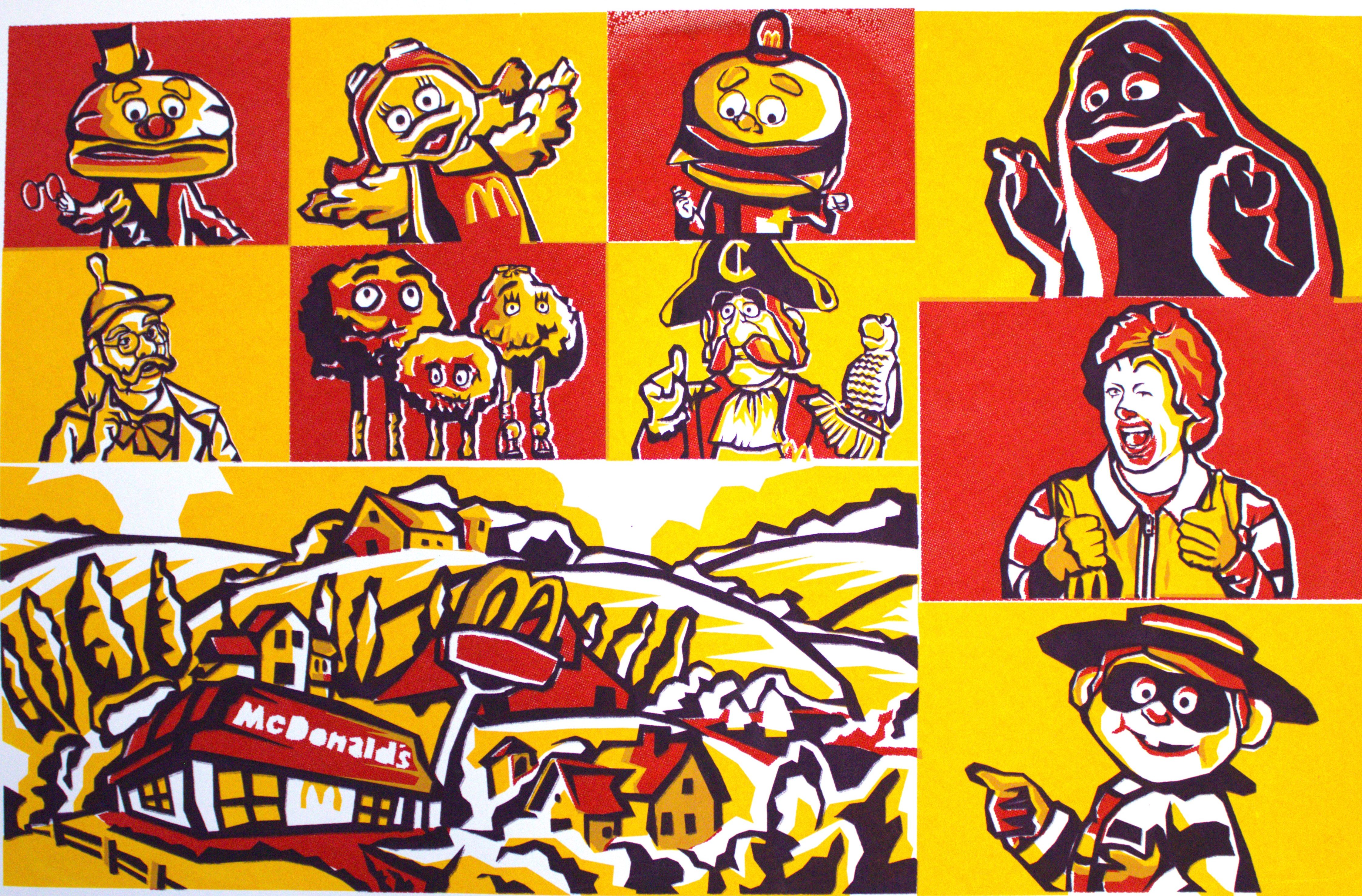 McDonaldland, Silkscreen with Speedball Ink, 10×16 Inches, 2022