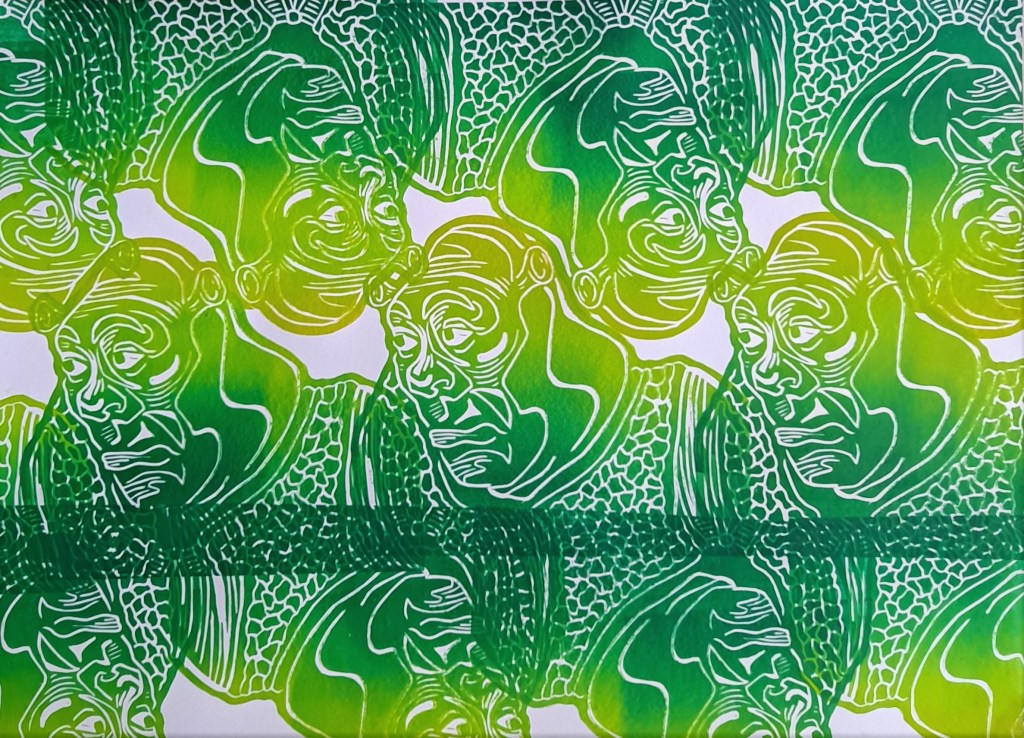 Shrek Duplicated and Flipped, Linoleum Print, 22×30 Inches, 2021